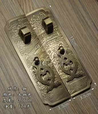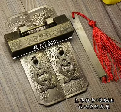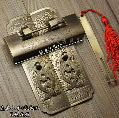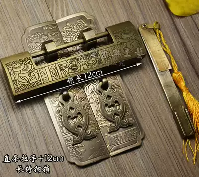 Antique copper lock Chinese style handle double switch cabinet door Pure copper handle Landscape straight handle with copper lock Copper accessories