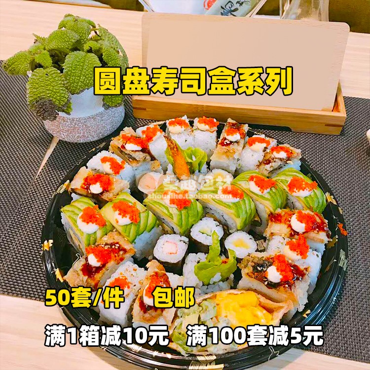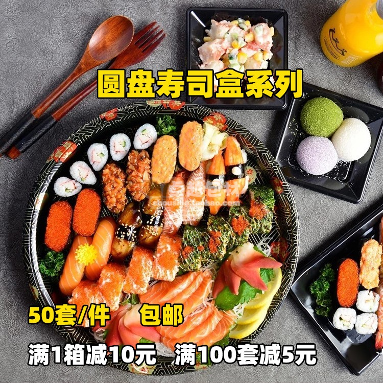 Disc sushi box platter One-time takeaway round five-grid six-grid small, medium and large packing box Lunch box Bento