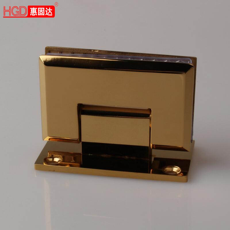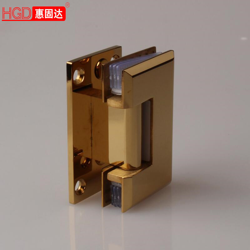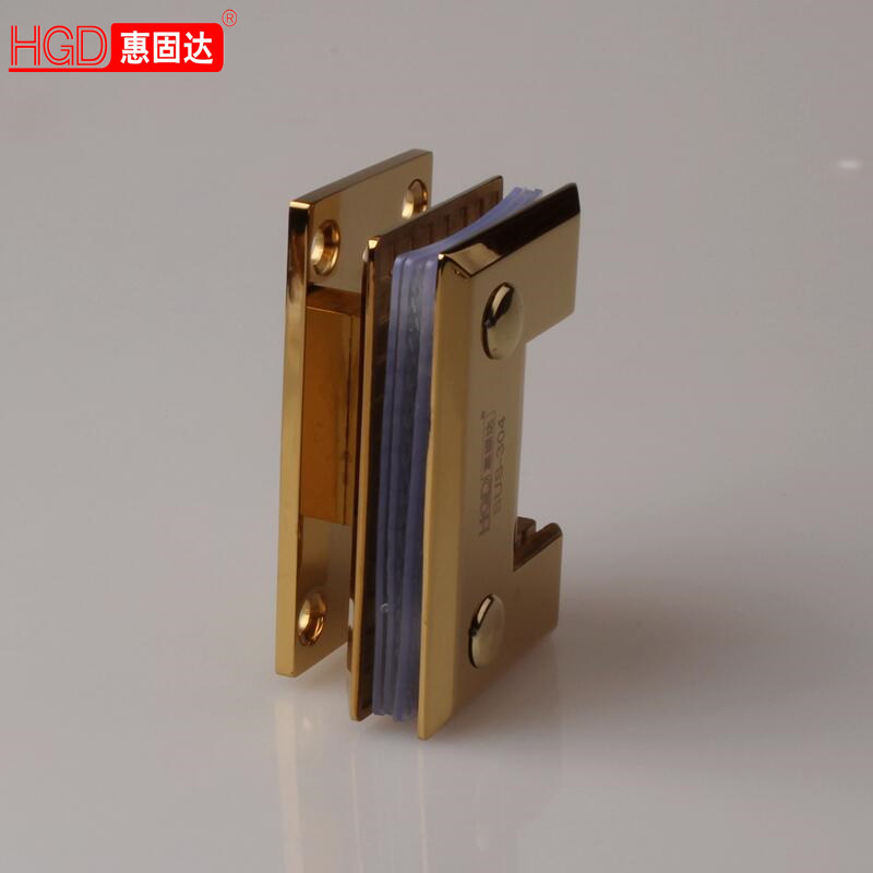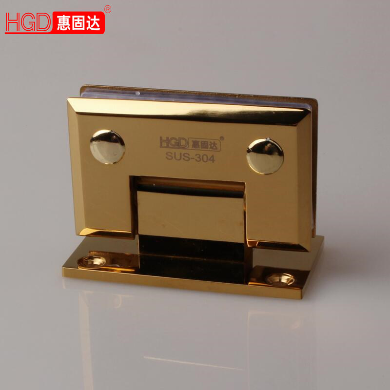 Huiguda Precision cast 304 steel glass door hinge Bathroom clip 90 degree beveled solid PVD titanium gold