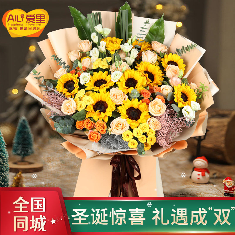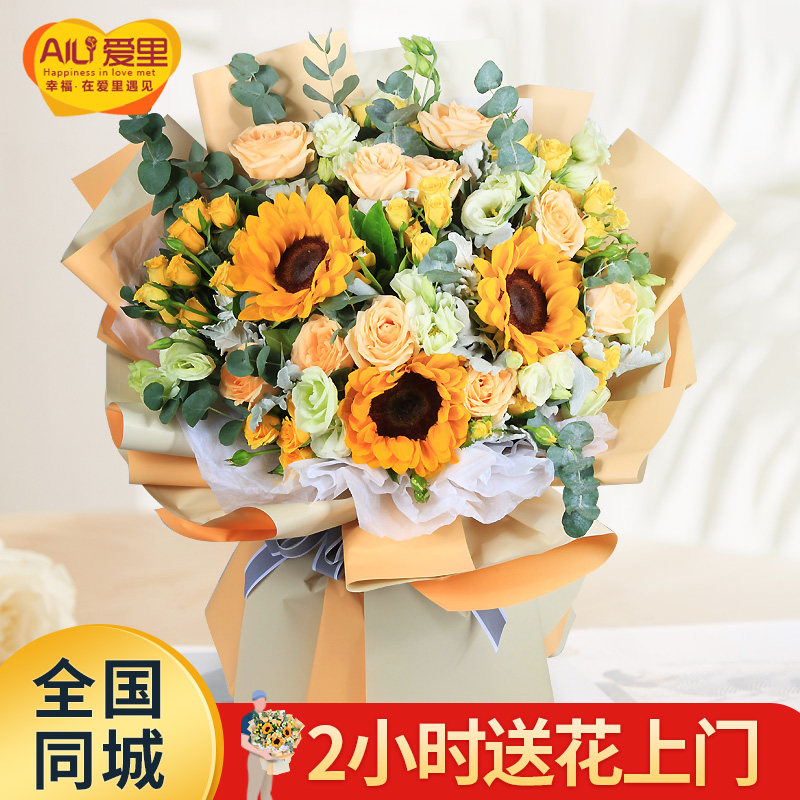 Sunflower bouquet mix and match flowers express delivery in the same city Birthday Beijing Shanghai Shenzhen Chengdu Nanjing Hangzhou