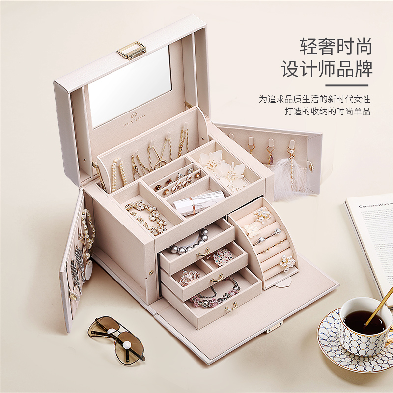 Wei Ran Duo jewelry box exquisite ring earring necklace large capacity jewelry storage box flannel high-end wedding gift