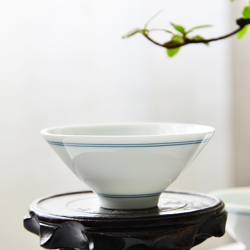 Hand painted green flower ceramic small tea cup bucket hat tea cup utility-tea cup white porcelain single cup teacup tea cup single tea bowl single