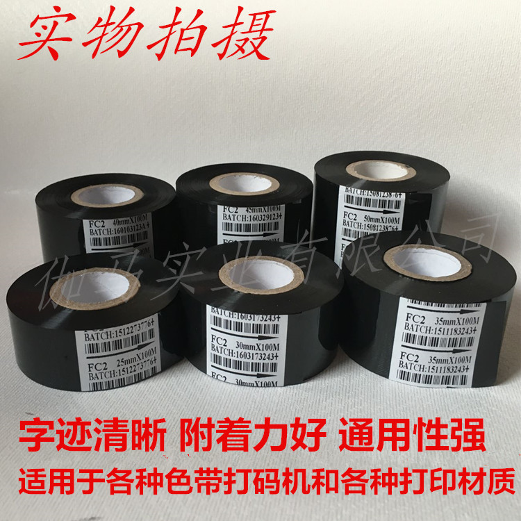 FC2 Black Ribbon 35mm * 100M CODE MACHINE RIBBON THERMAL TRANSFER RIBBON PACKAGING MACHINE CAR LABEL MACHINE RIBBON