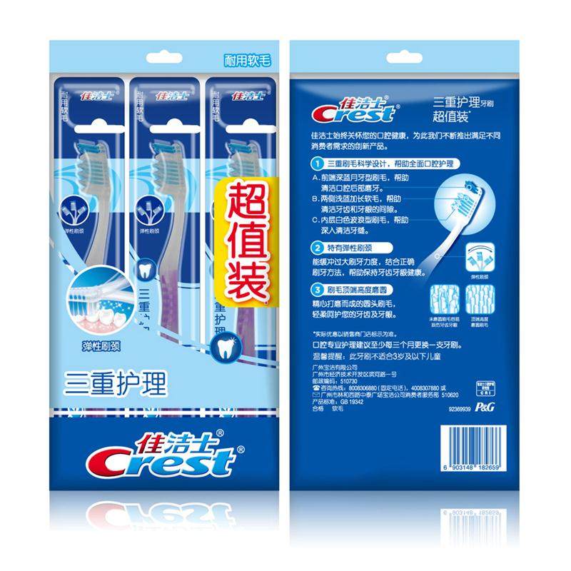 Crest Triple Care Toothbrush Adult Durable Bristle Design Manual Cleaning Home Set