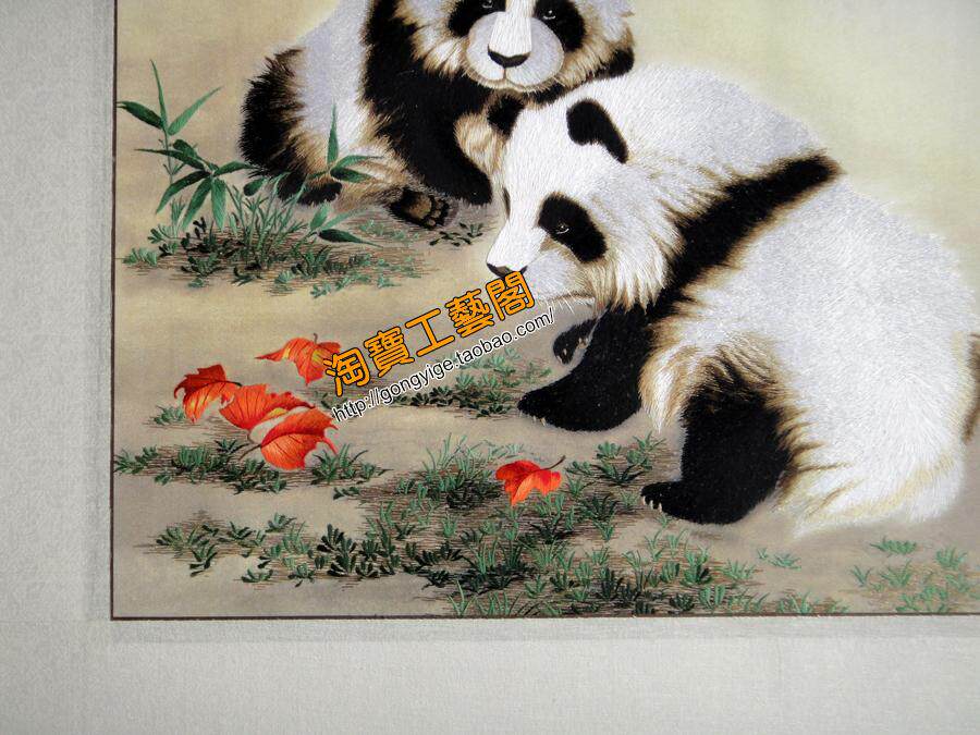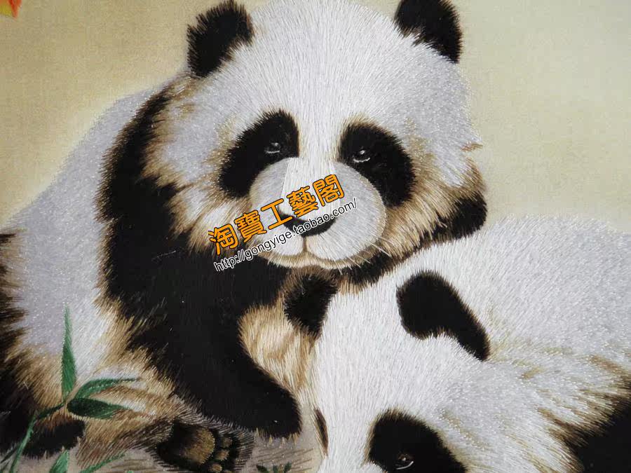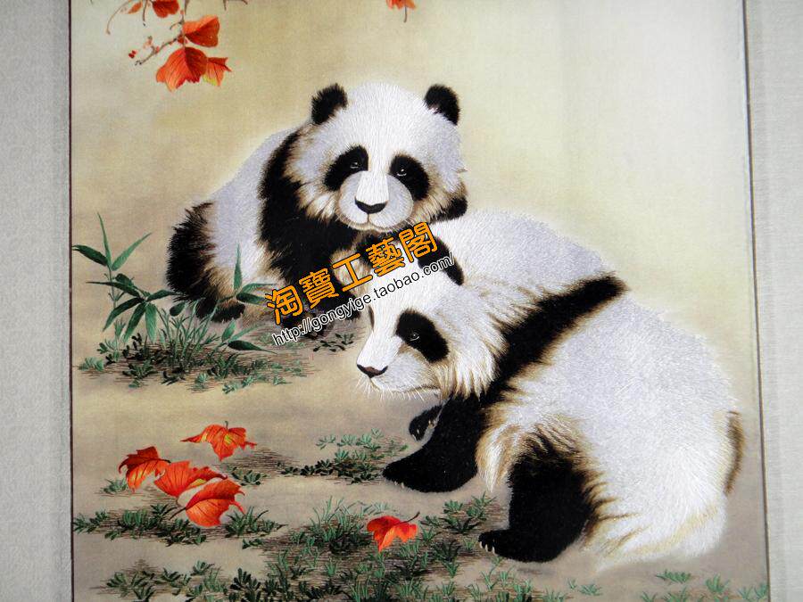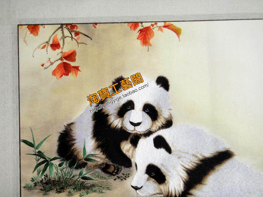 Hand embroidery Panda direct hanging embroidery Su embroidery finished hand embroidery soft mounting plus shaft Large size Chinese national Treasure map