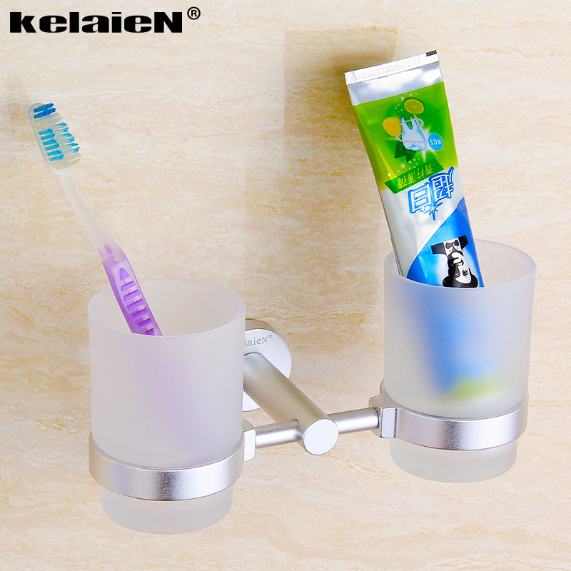 Space Aluminum Mouthwash Cup Makeup Room Toothbrush Holder Bathroom Hardware Hanger Bathroom Wall Storage Double Cup Rack