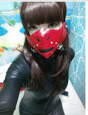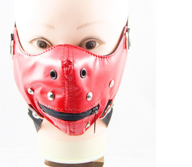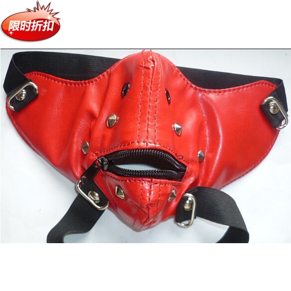 Punk trend leather jewelry Harley rivets red zippered leather mask bar stage forming props