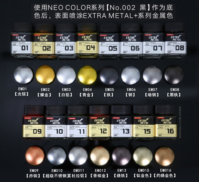 √ Yingli Craftsman domain EXTRA METAL super METALLIC paint 18ml EM01~16