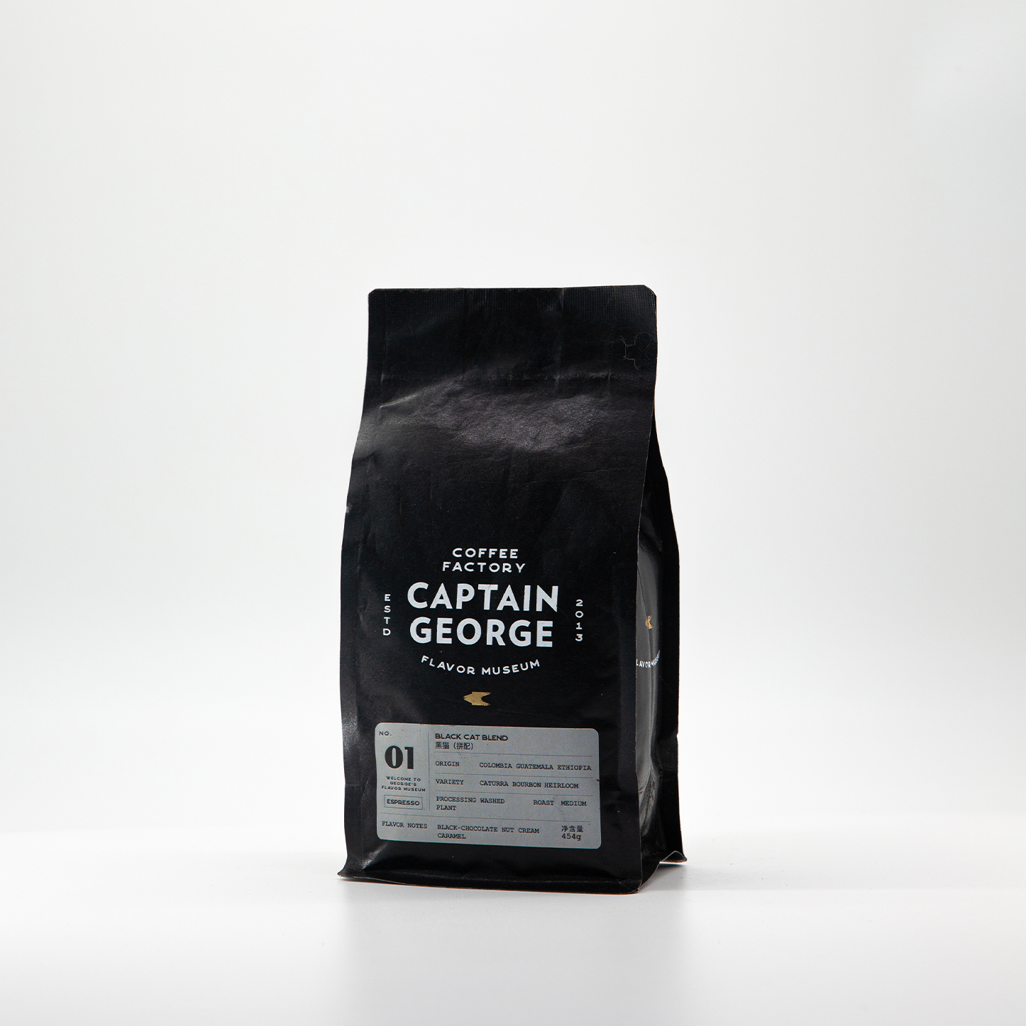 Captain George Black Cat Blending Fragrant Boutique Espresso Italian American Coffee Bean Grind Powder 454g