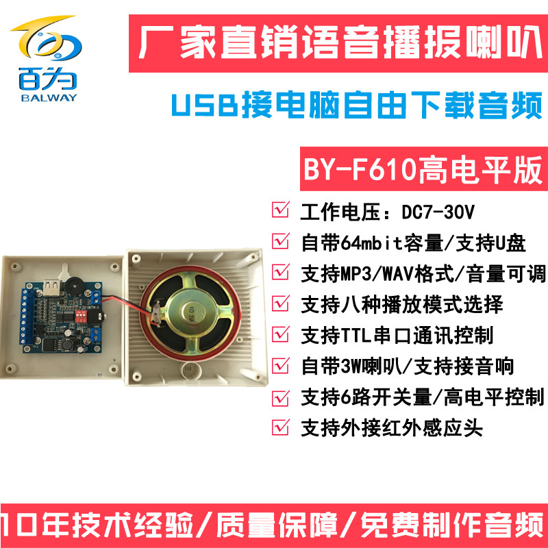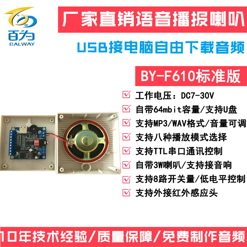Manufacturer Directly Sold 12V 24V Voice Module Announcement Horn MP3 Audio Player Sound Prompt BY-F610