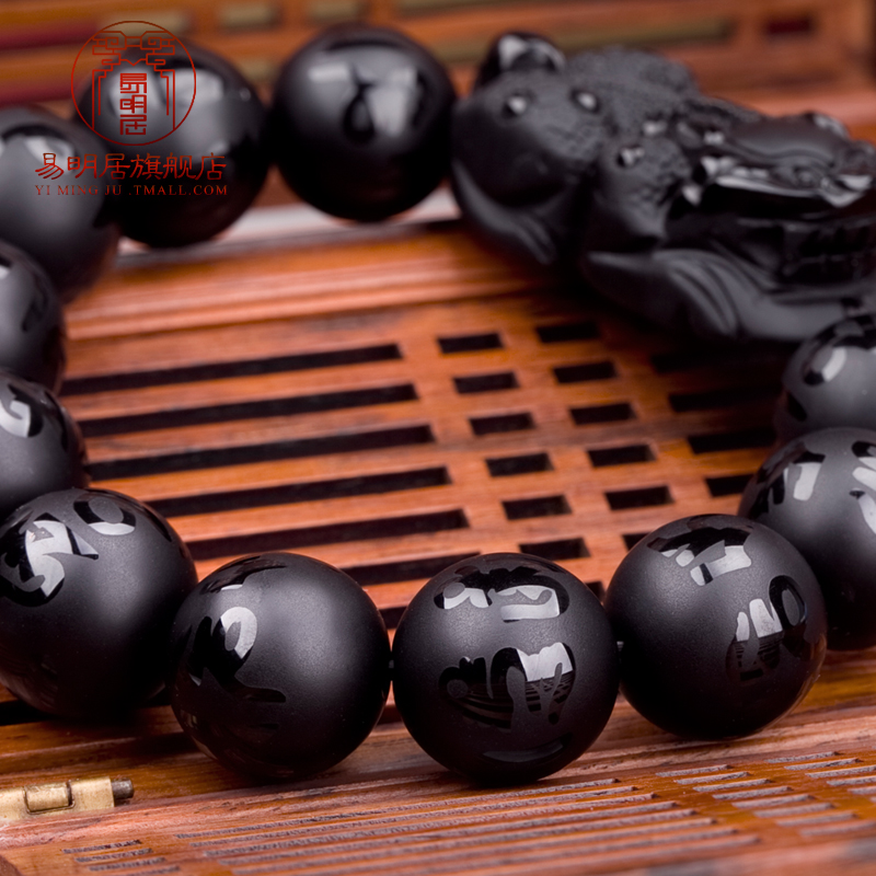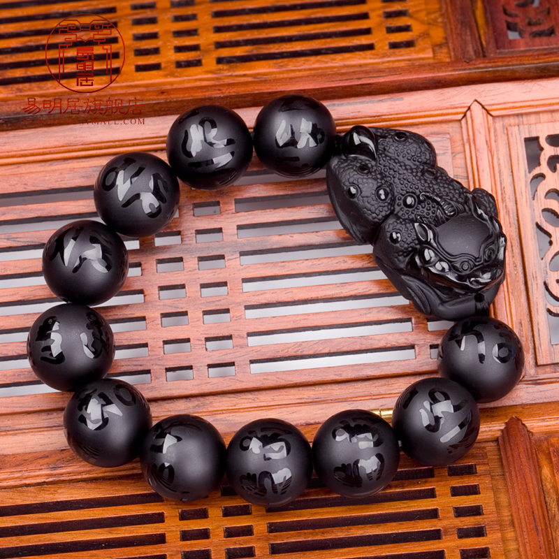 Yi Mingju Pichu Pixiu hand chain men and women Obsidian Pixiu six-character truth hand string domineering large