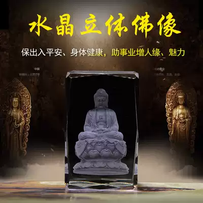 Crystal carved Buddha statue ornaments 3D laser Tullah Buddha base customized anti-evil Buddhist supplies Bodhisattva praying