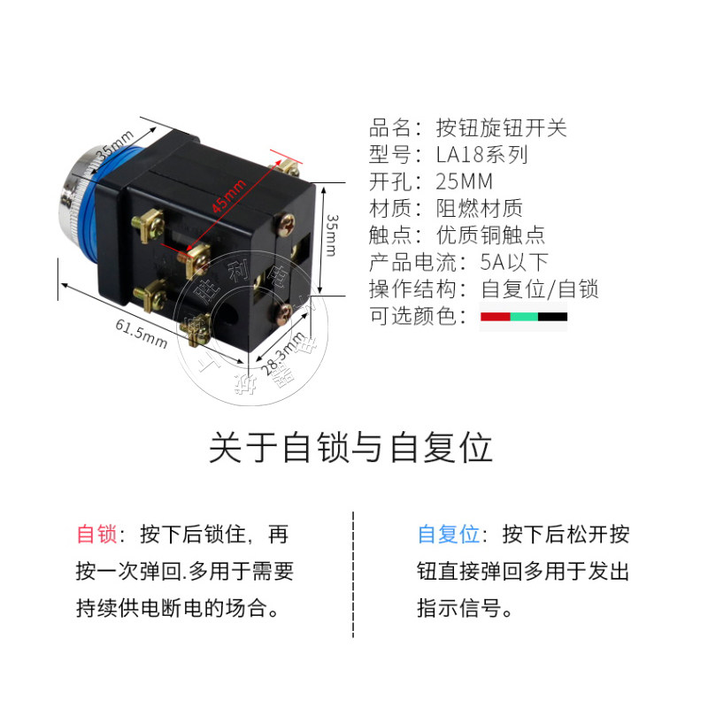 LA18-22 button switch knob control button self-reset flat button selection button x2x3 red green 25mm