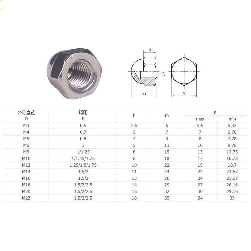 304 stainless steel cover type nut lid shaped decorative cap round ball head cover type nut screw cap M4M5M6M8M10-M20