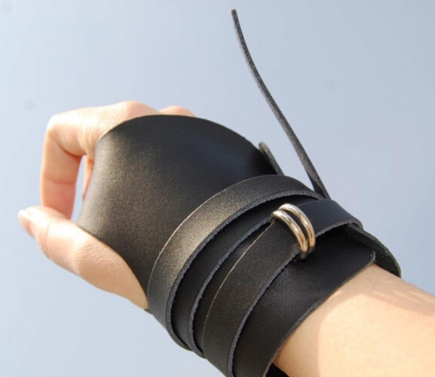Punk trendy genuine leather gloves Harley rivet leather gloves left and right half finger glove stage ostomy