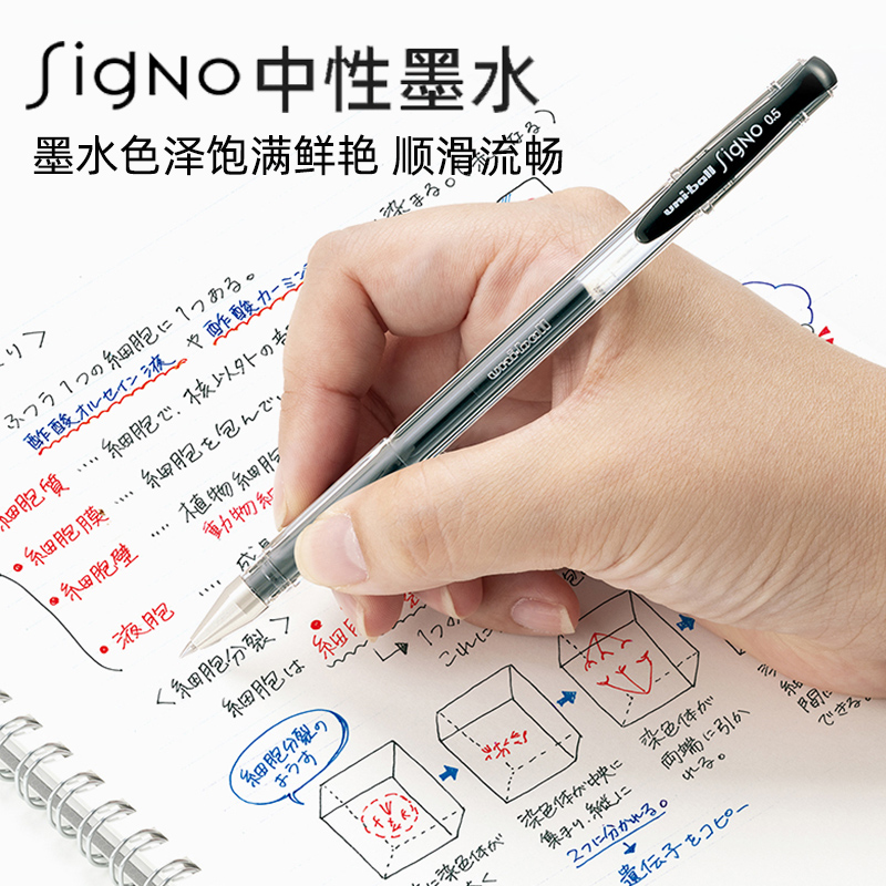Japan uni Mitsubishi UM-100 color gel pen 0 5mm exam black pen Office students with beads signature pen Black brush pen Red and blue bullet simple stationery exam uniball