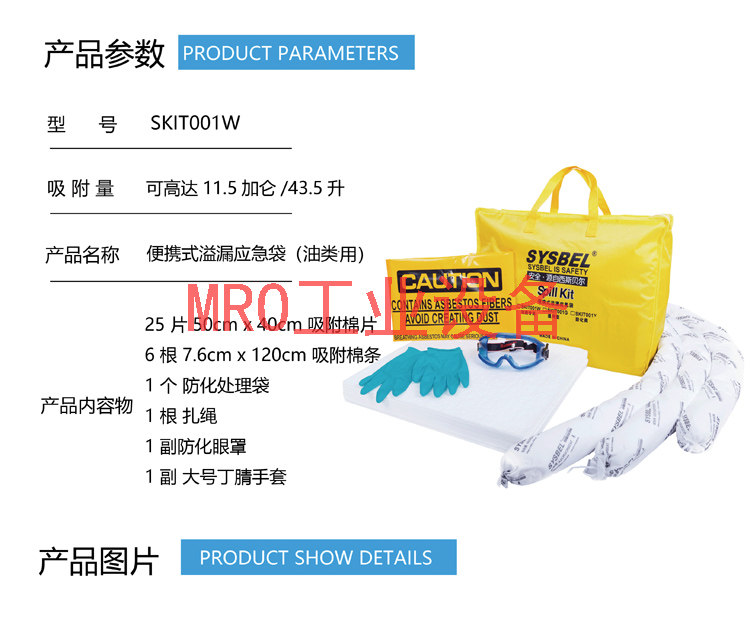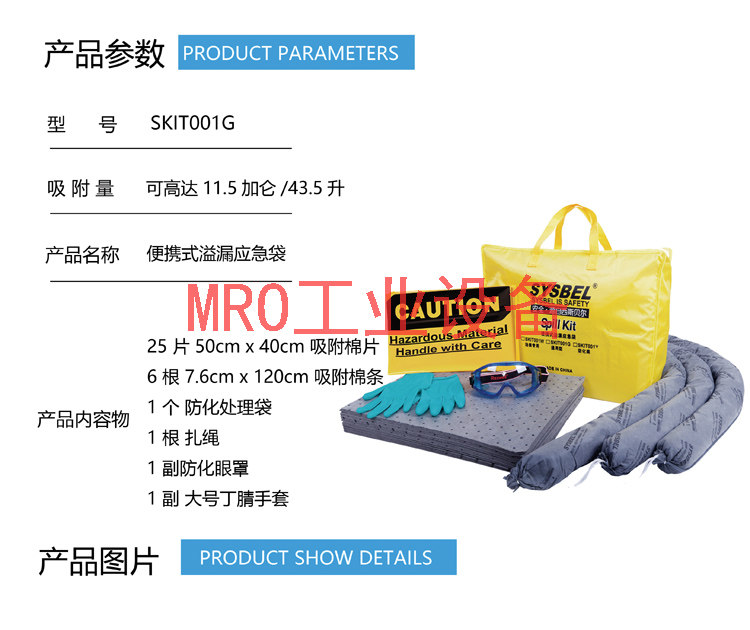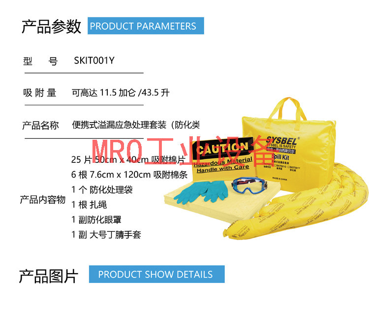 Sisbel Portable Chemicals Oil Leakage Adsorption Cotton Emergency Bag Handling Suit SKIT001G Y W