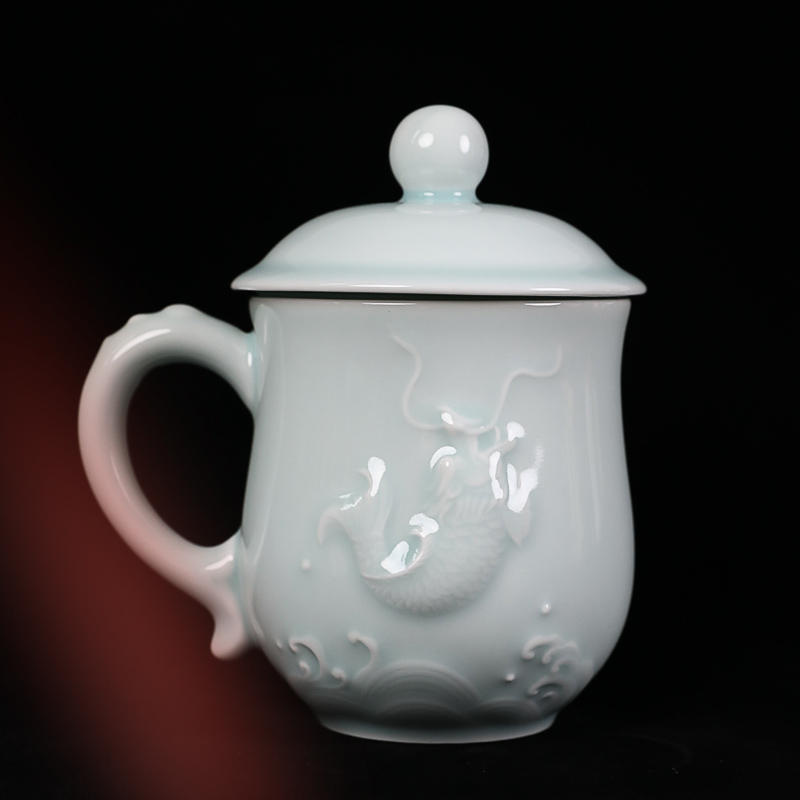 Ultra Green Porcelain Red Dragon Green Porcelain Pair Cup With Lid Creative Couple Cups Tea Cup Tea Cup Business Meeting Gift