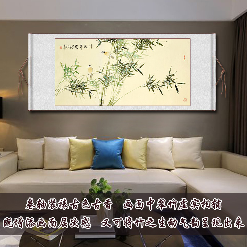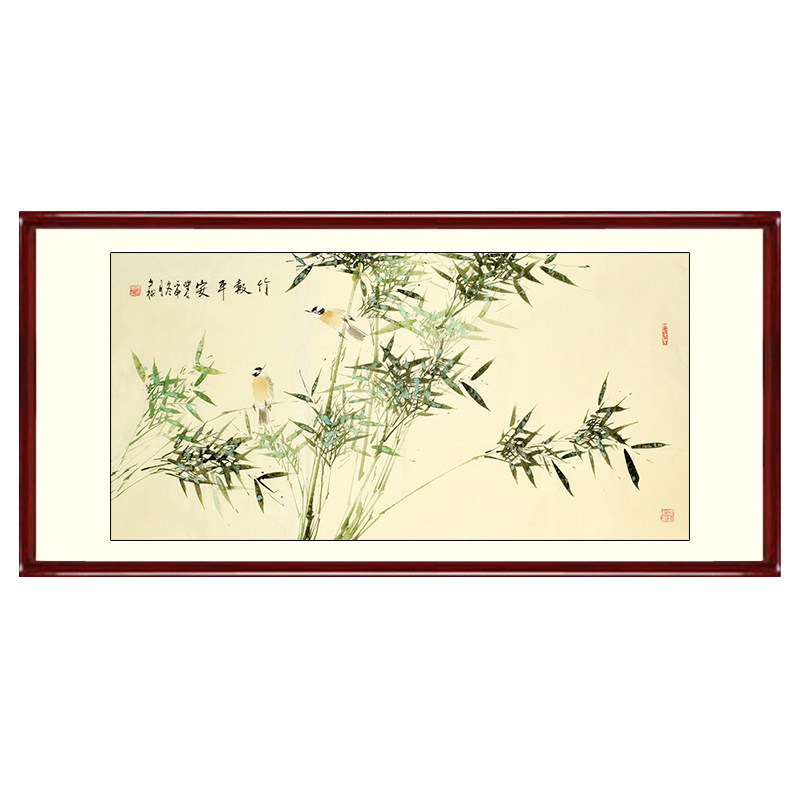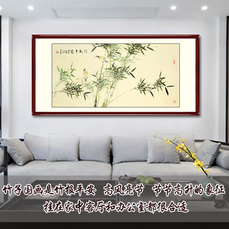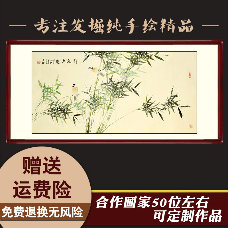 National painting bamboo paintings Chinese painting and painting New Chinese pure hand painted horizontal version of flower and bird work pen Bamboo newspaper Ping An Living room Office