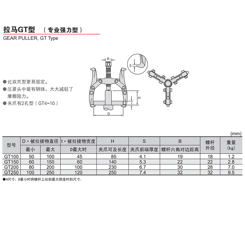 Japan Shipper SUPER (small bully king) GT-8 GT-200 ramer bearing type three-claw pull-code