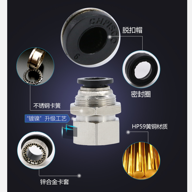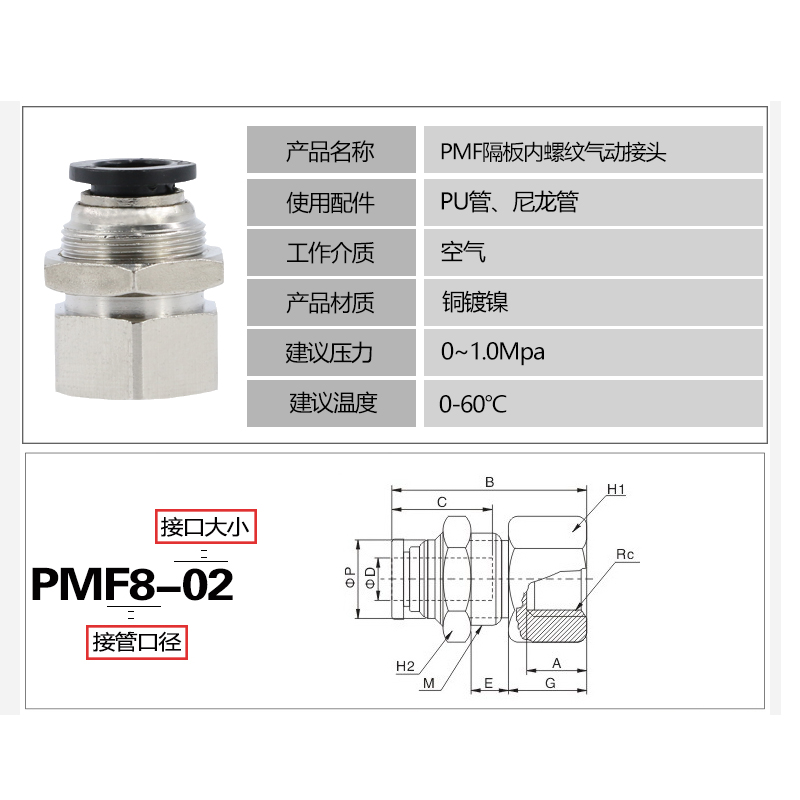 Air tube fast joint PMF 8-02 Pneumatic internal thread 6mm01 string plate partition through inner tooth docking fast plug