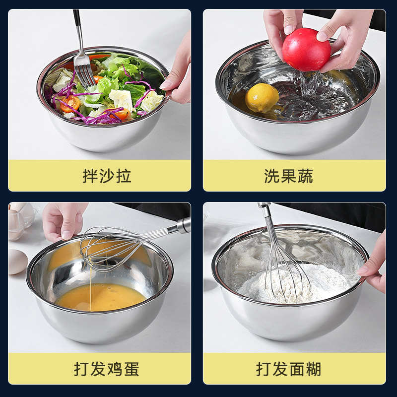 Youthu Baking Stainless Steel Basin Home Whipped Basin Wash Vegetable Basin Kitchen Multipurpose and Noodle Basin Cooking Fire Boiler Bowl