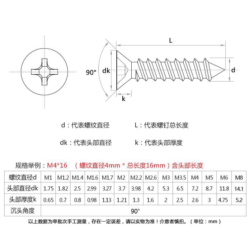 304 stainless steel sink head self-tapping screw 304 stainless steel flat self-tapping screw M4 2 series(50)