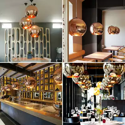 Nordic modern simple bar lamp personality creative bar dining room single head round ball lamp electroplating ball glass chandelier