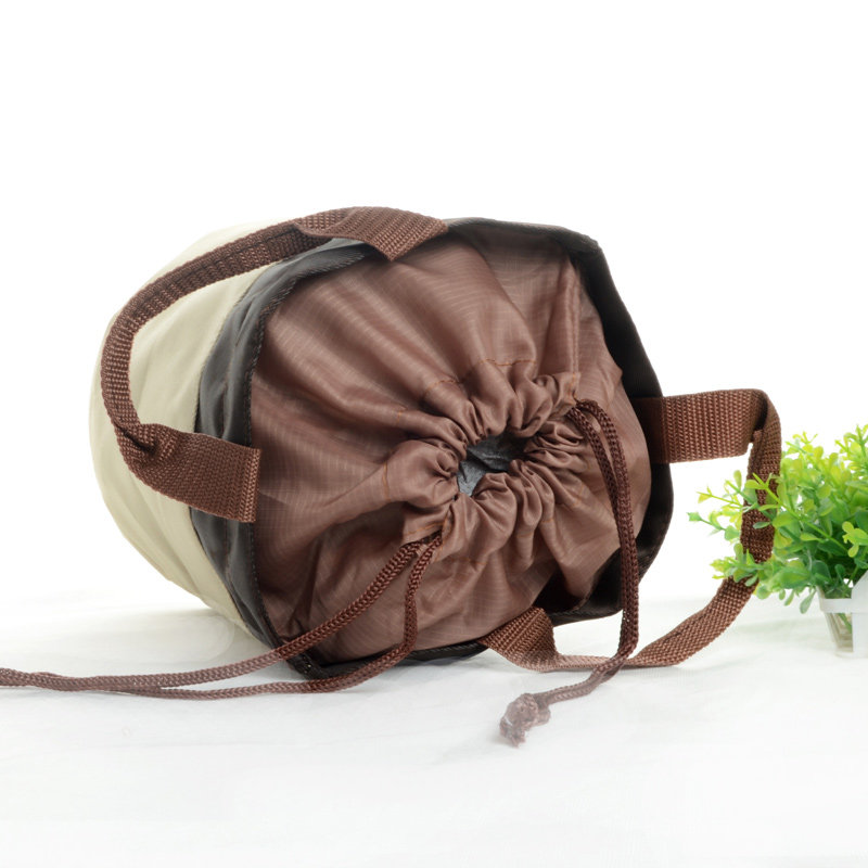 The drawstring of the pocket extends beyond the storage
