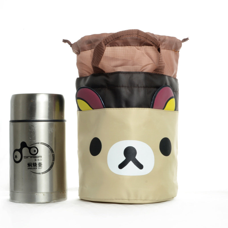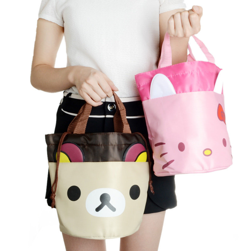 Large waterproof thick round cartoon Bento bag cute rice bucket with Lunch Bag tote bag