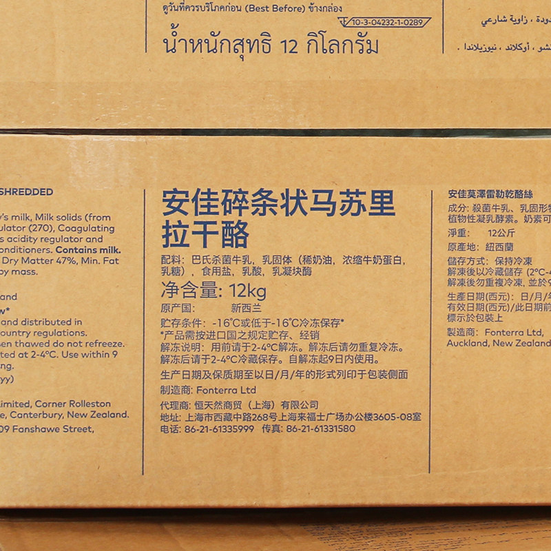 Old New Zealand Anga Mozzarella Cheese Shredded cheese Shredded cheese Pizza Brushed Cheese 12kg