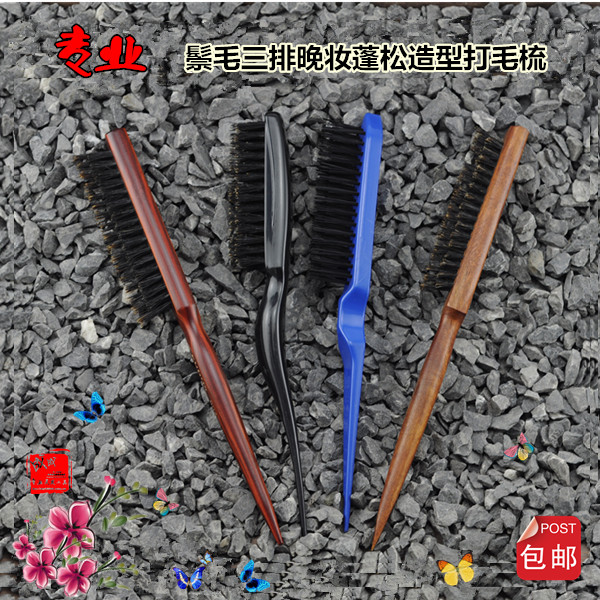 Pan hair evening makeup fluffy shape hair comb long and short tooth comb pointed tail comb pig bristle hair three-row hairdressing comb