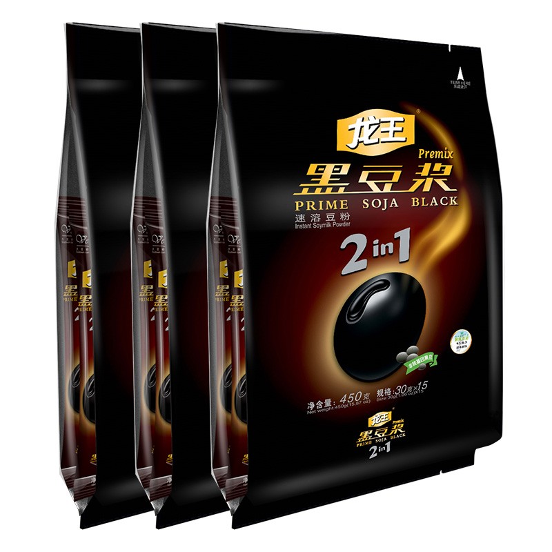 Dragon King Black Bean Milk Powder Original Non-GMO Instant Breakfast Sachet 450g*3