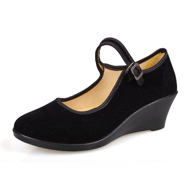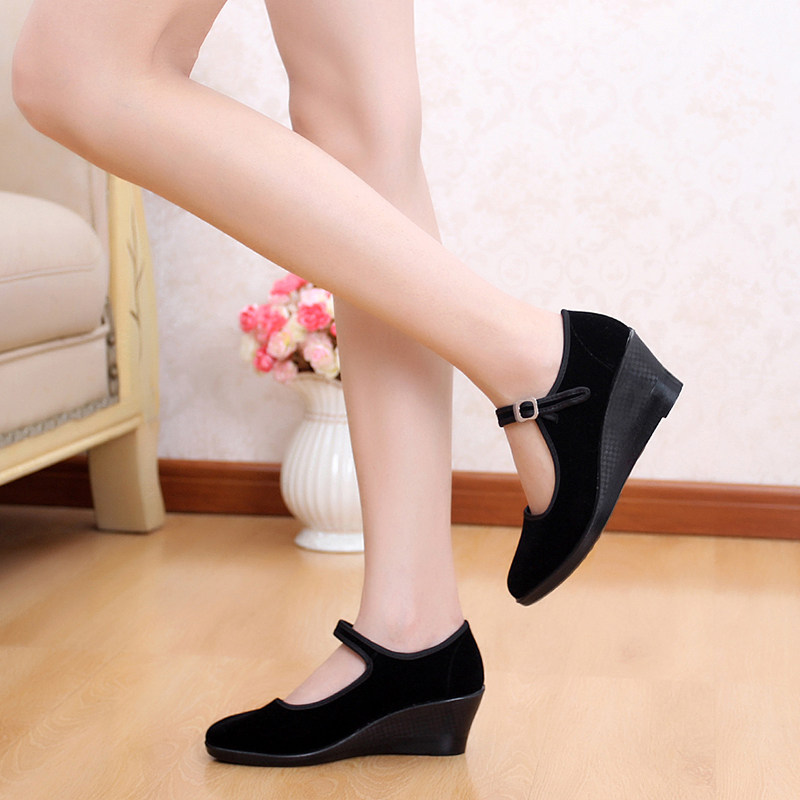 Black old Beijing women's cloth shoes women's shoes wedge-shaped single shoes work shoes professional hotel shoes high-heeled all-match casual shoes