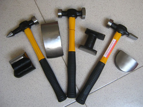 7 pieces of automotive sheet metal sheet metal hammer coated sand sheet hammer tool concave repair multifunction plate gold tool suit
