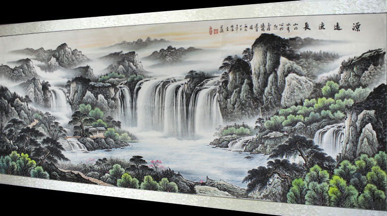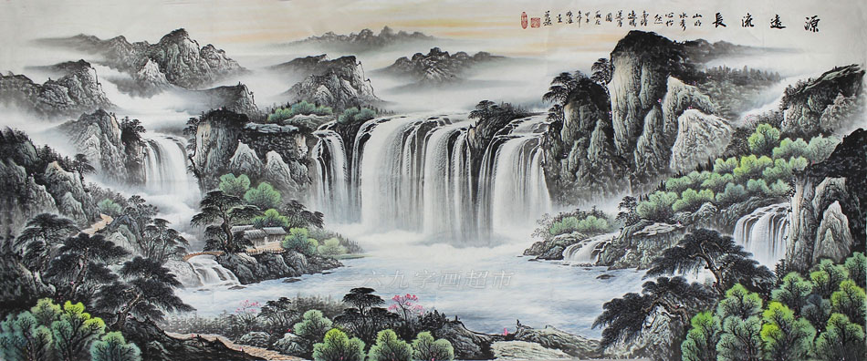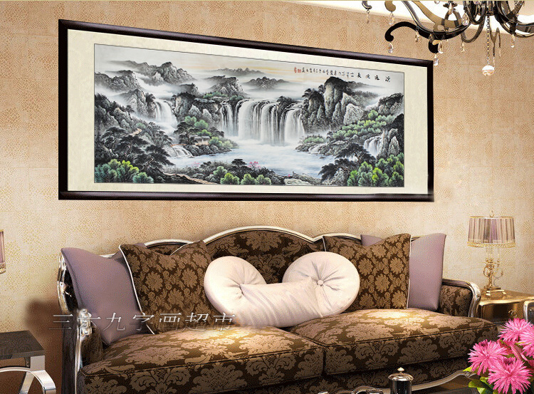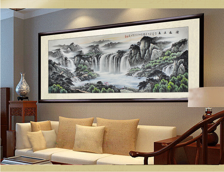 Pure hand-painted Chinese painting calligraphy and painting living room sofa background wall landscape painting Fengshui cornucopia office hanging painting decorative painting