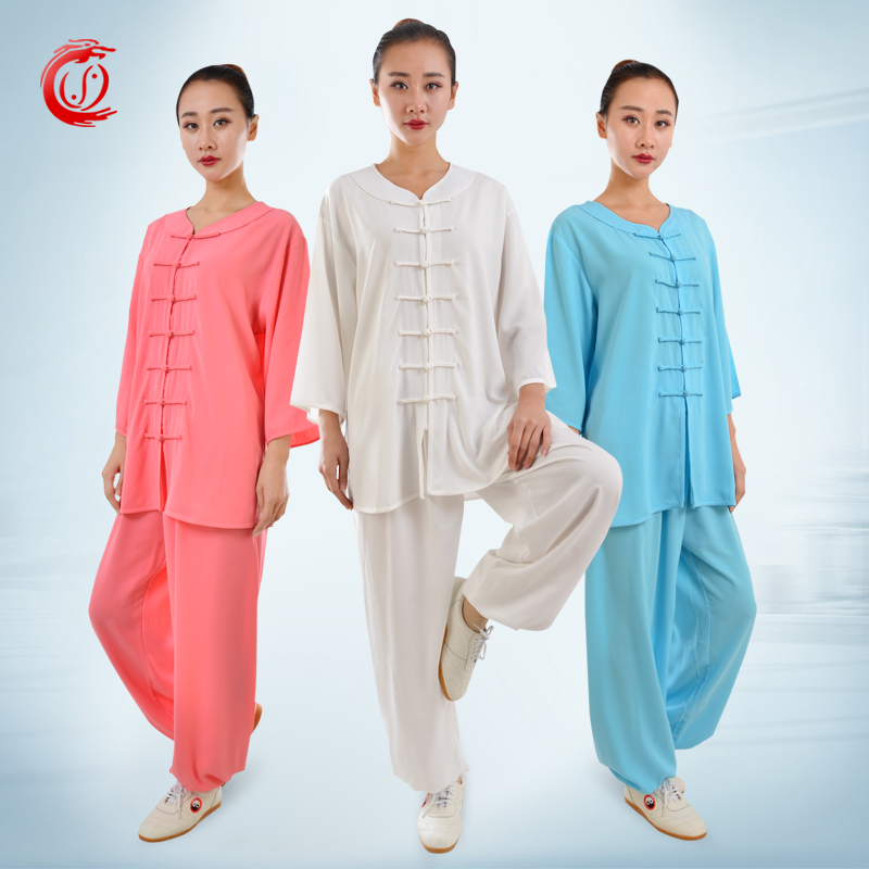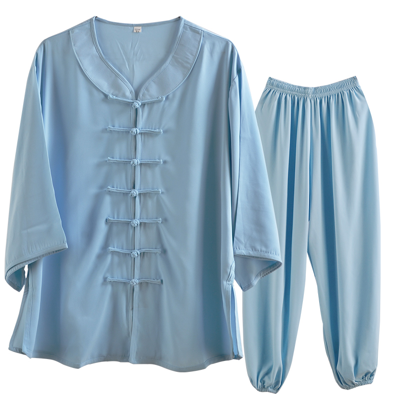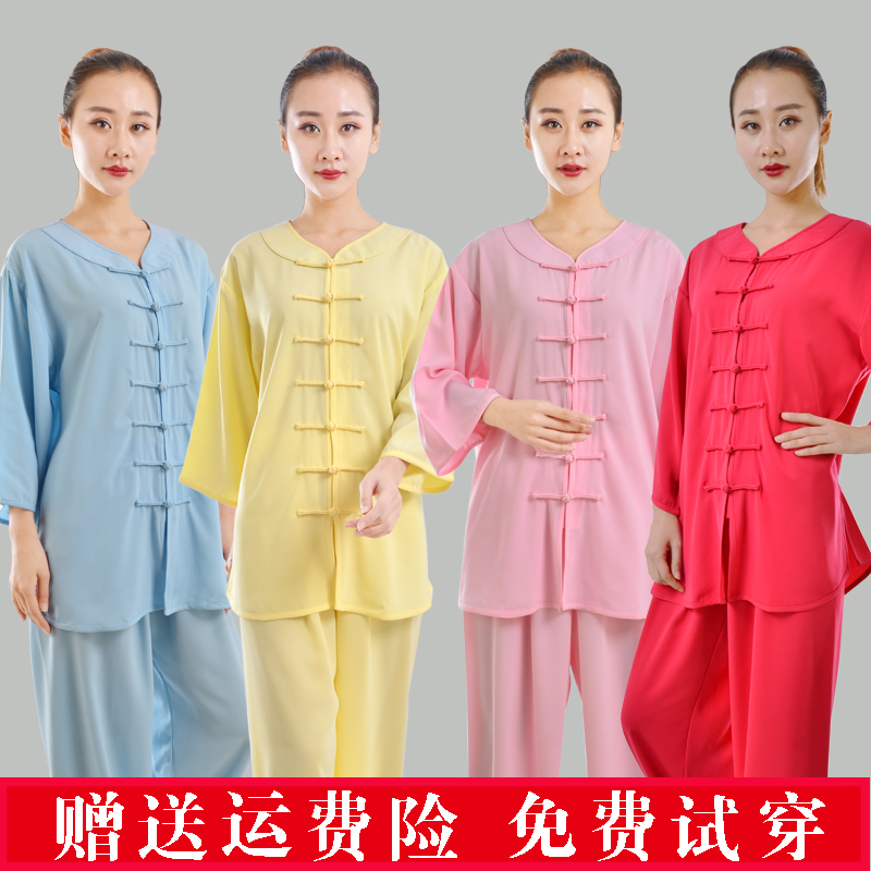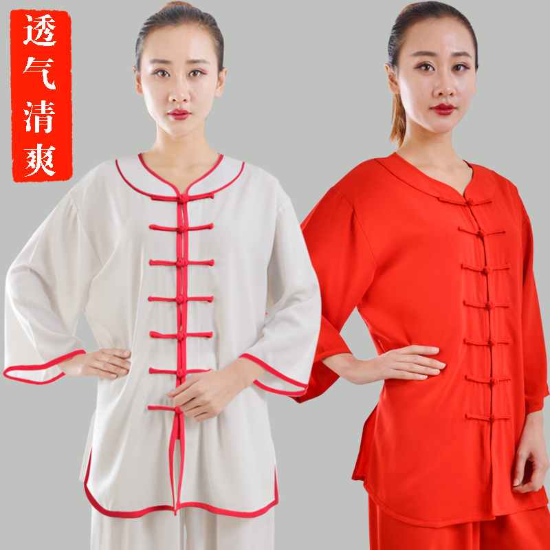 Hengshu summer Tai Chi clothing women's low-collar mid-sleeved short-sleeved cotton plus silk Tai Chi clothing martial arts practice performance clothing