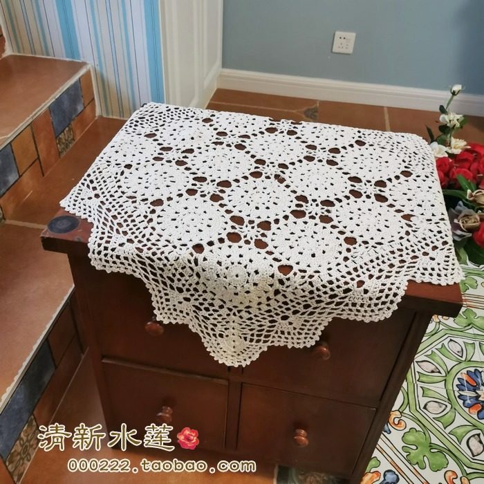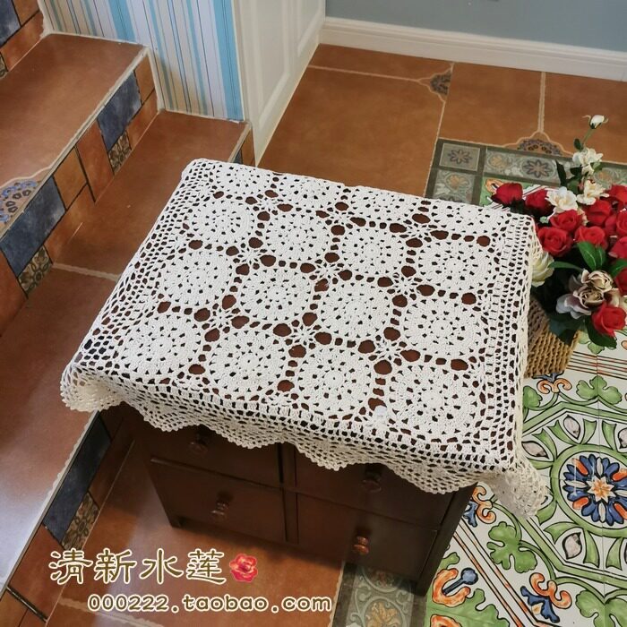 Hand hook flower Chinese style European-style retro pure cotton lace hollowed-out sofa towels decorative lid bumi white square