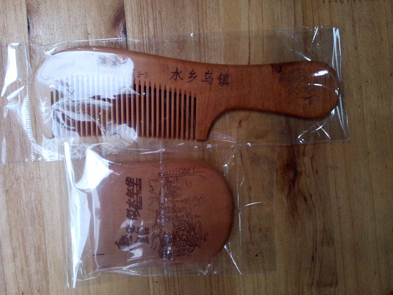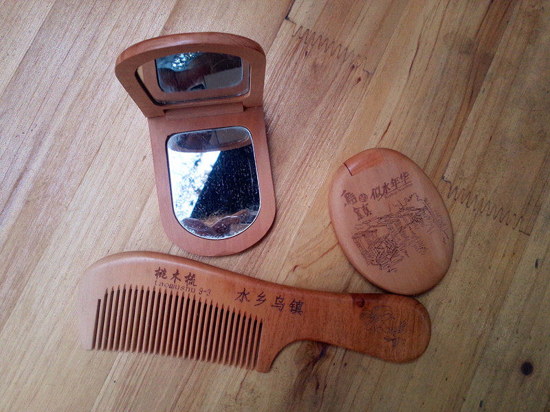 Wuzhen specialties feature Wuzhen word peach wood comb long handle comb mirror mirror mirror comb mirror set tourism souvenirs