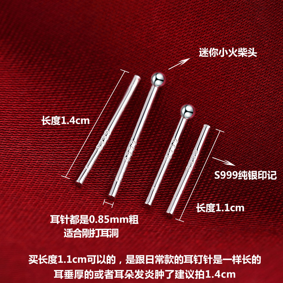 Shangfu 999 silver stud earrings women's sterling silver ear piercing anti-blocking needle ear stick invisible ear pin ear stick earrings simple earrings