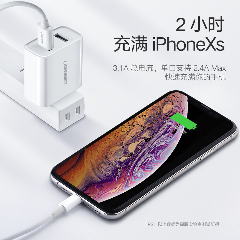 Green-linked dual-port charging head fast charge suitable for Apple 14 Huawei Xiaomi mobile phone tablet ipad Android charger plug multi-port usb universal iphone13 data cable table lamp speed 5V1A2