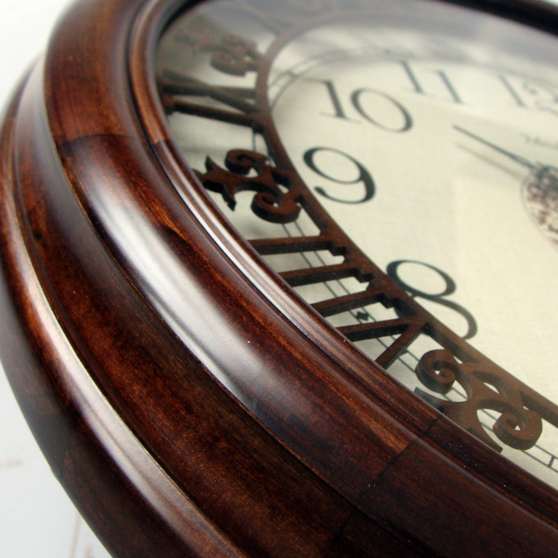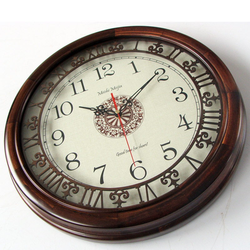 Solid wood mute wall clock American European vintage new Chinese cutout quartz clock large wall clock living room automatic timing