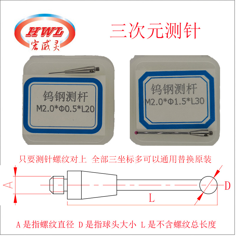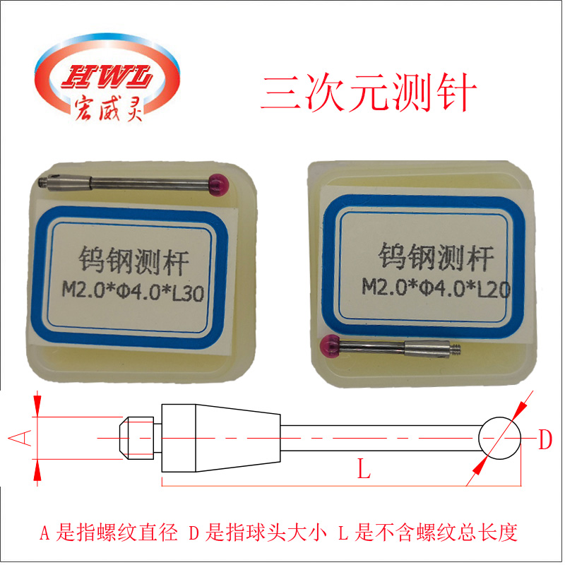 Three-coordinate measuring needle high-precision three times metatest needle red gem measuring ball head three-coordinate probe thread M2 0mm