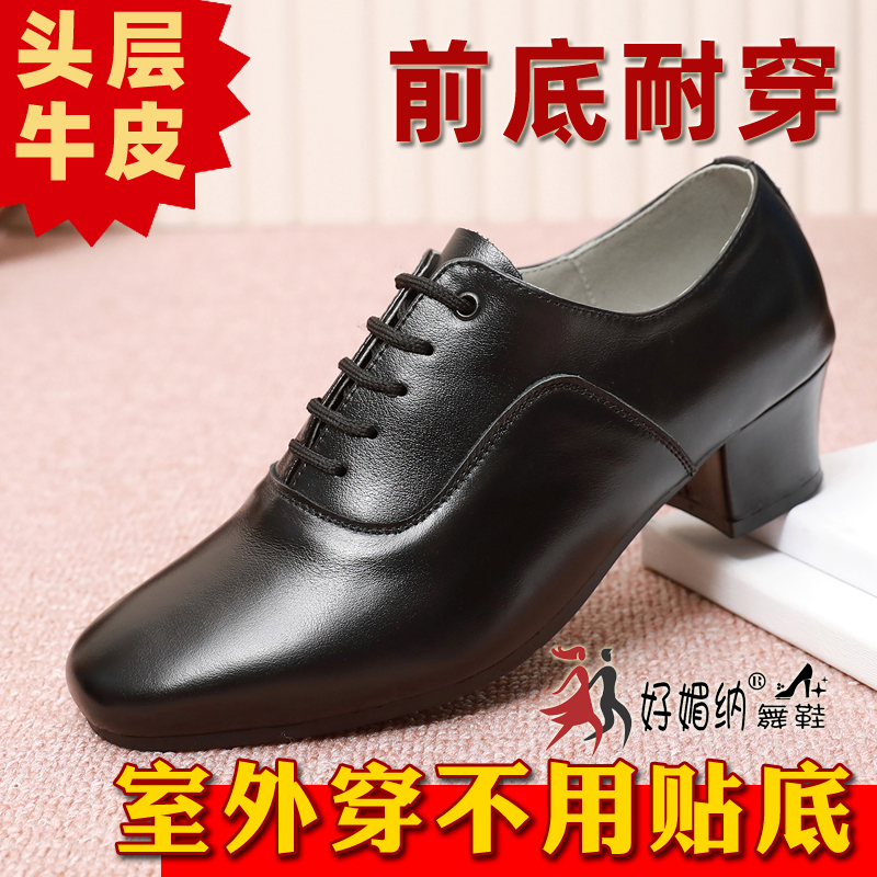 Dancing Shoes Men's Latin Dance Shoes Adult Genuine Leather Straight Bottom Middle Heel Outdoor Headlayer Bull Leather Square Dance Shoes National