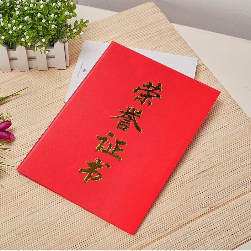 Paper surface red leather pattern hot stamping honor certificate appointment letter graduation certificate cover shell with inner pages can be customized 16K12K8K6K certificate