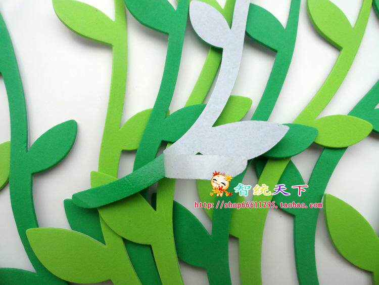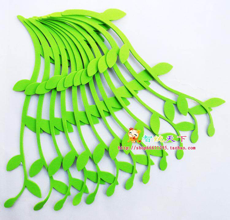 Kindergarten Classroom Black Board Newspaper Themed Wall Placement Supplies Foam Green Leafy Willow swatter Decorative Wall Sticker