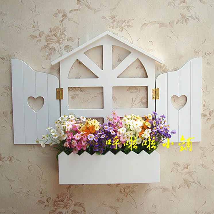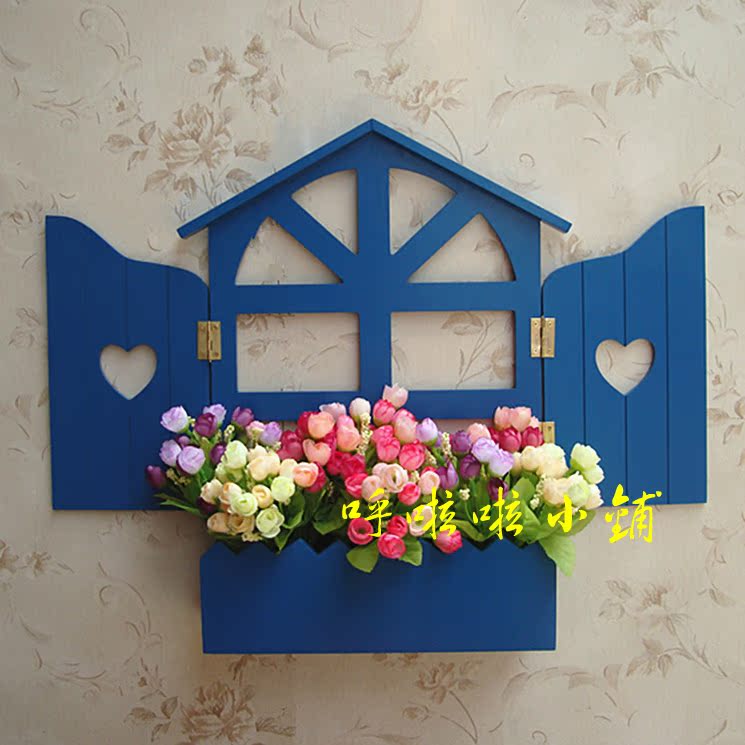 White fake window, one blue fake window, one blue fake window, 6 bunches of lavender blue fake window, 6 bunches of roses, blue fake window, 5 bunches of small daisies, white fake window, 6 bunches of roses, white fake window, 5 bunches of small