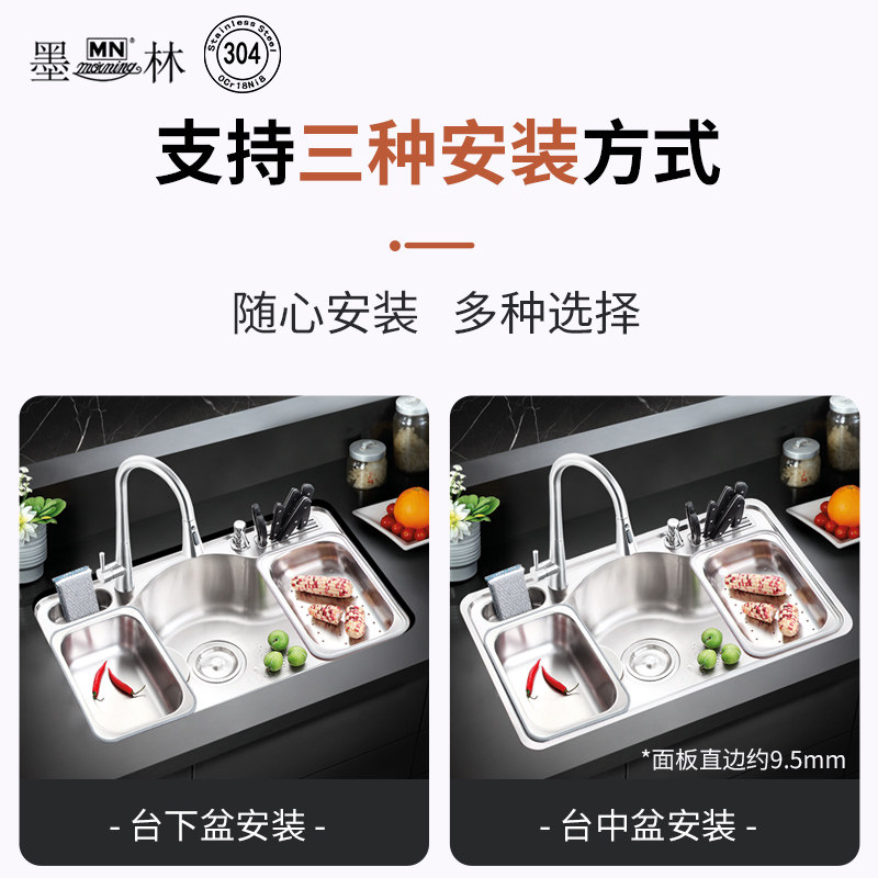 Molin 304 stainless steel sink Multi-function kitchen sink sink medium basin thickened sink large single sink sink