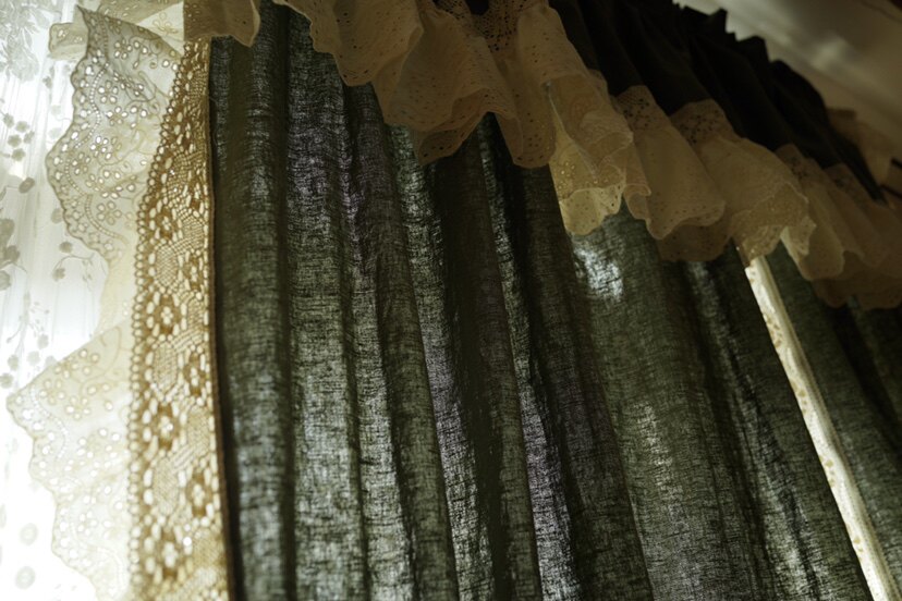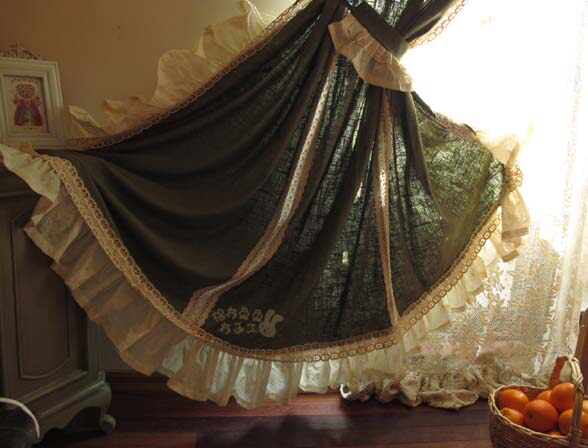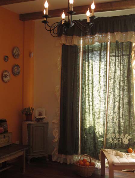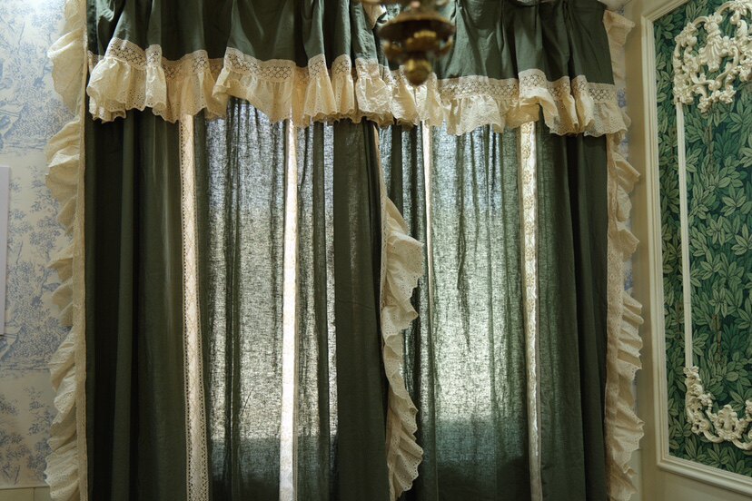 Is it because of the rain that delayed the wait for the flowers to bloom~~ Rustic grey-green linen handmade curtains