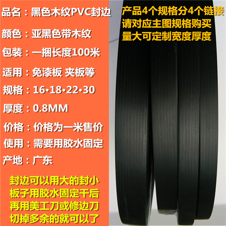 pvc18mm ecological board edge banding board edge black wood grain relief edge edge Paint-free board edge banding